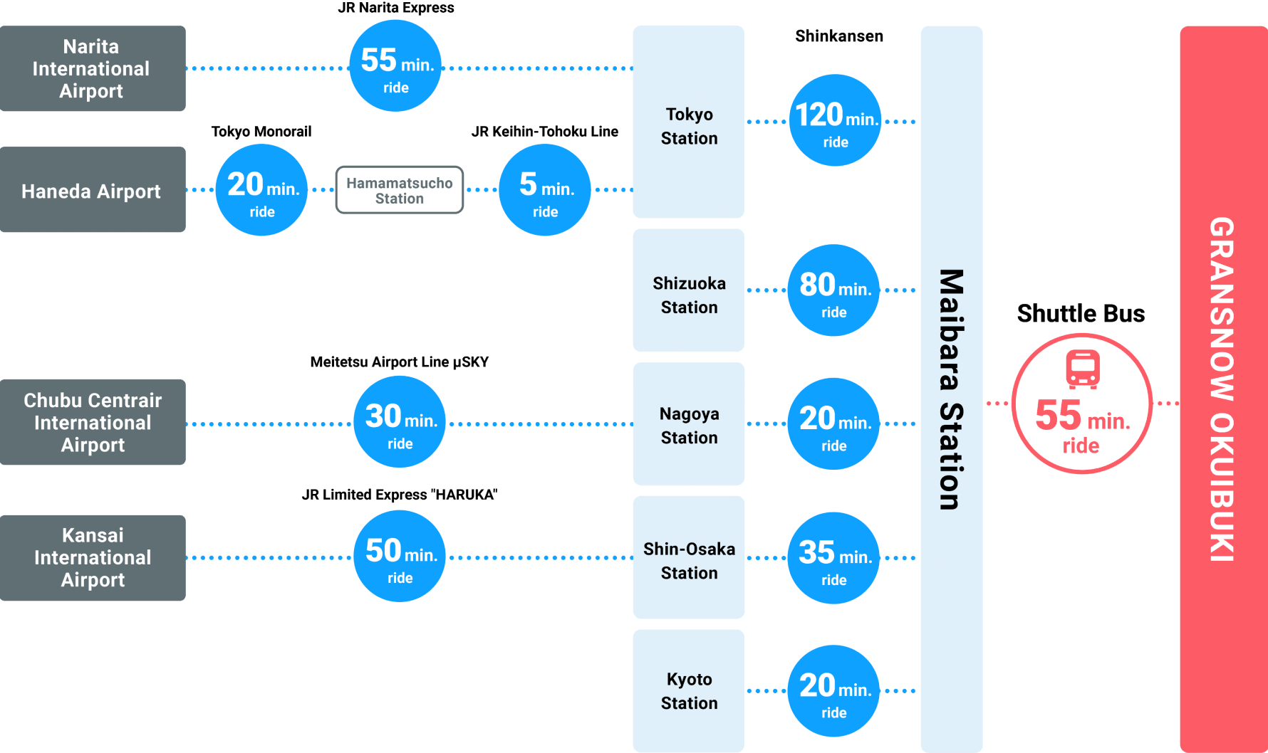 Ride directly from major cities such as Osaka, Kyoto, & Nagoya!