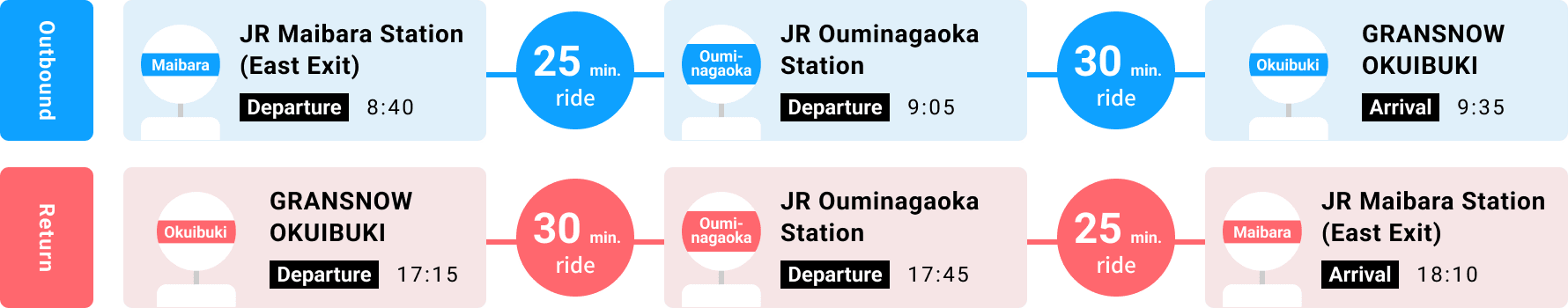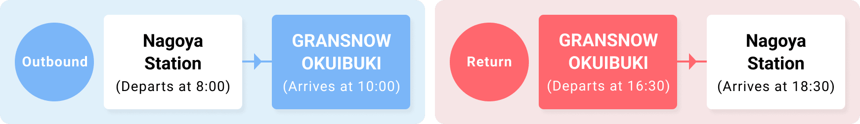 Round-trip bus plan includes one-day lift ticket! No charge for loading skis and snowboards. All seats are non-smoking. You will be handed an IC chip lift ticket in advance, so there is no need to line up at the lift ticket counter.