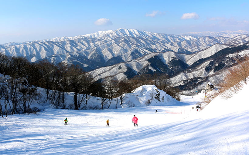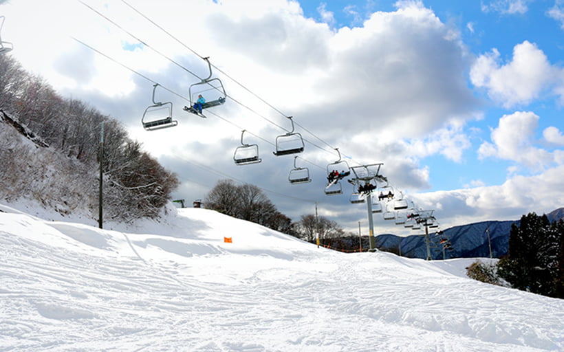 Offering magnificent panoramic views of Lake Biwa and the North Alps, this downhill trail serves up continuously exhilarating runs, from the moguls uphill to the packed slopes lower down. You can also get off the lift at the landing halfway up, allowing you to pick the course you feel like taking at the time.